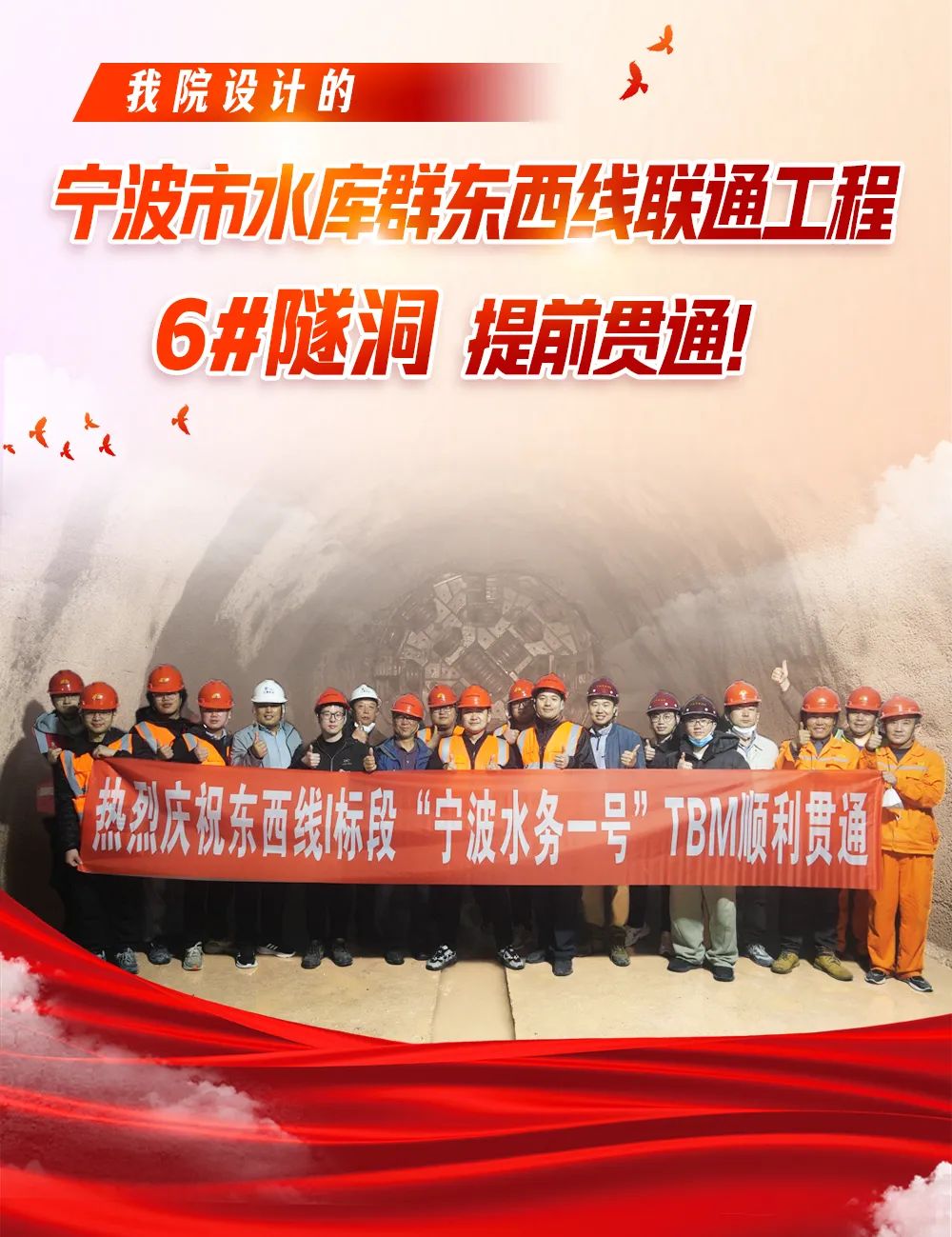 我院設(shè)計(jì)的寧波市水庫(kù)群東西線聯(lián)通工程6#隧洞提前貫通!