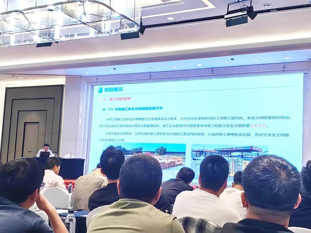 培訓現(xiàn)場,我院高級工程師潘炳成圍繞水利高質(zhì)量發(fā)展和中國式現(xiàn)代化兩大任務(wù),對寧波市水利工程建設(shè)安全文明施工標準化技術(shù)要點進行宣貫。從水利工程項目建設(shè)安全文明施工的規(guī)范標準到安全防護措施,從有限空間作業(yè)的安全管理到事故防范相關(guān)標準化要求,潘炳成結(jié)合安全生產(chǎn)事故實例,對標準進行系統(tǒng)梳理和量化解讀,并重點突出了“安全即底線”的施工理念。