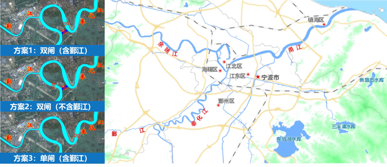 殺雞灣建閘課題的提出:從防洪角度,按照“大小洪水分道走” 的思路,在殺雞灣河段設(shè)置干流節(jié)制閘,以調(diào)控奉化江洪水。
