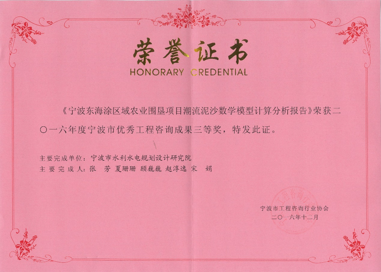 寧波市優(yōu)秀工程咨詢成果三等獎