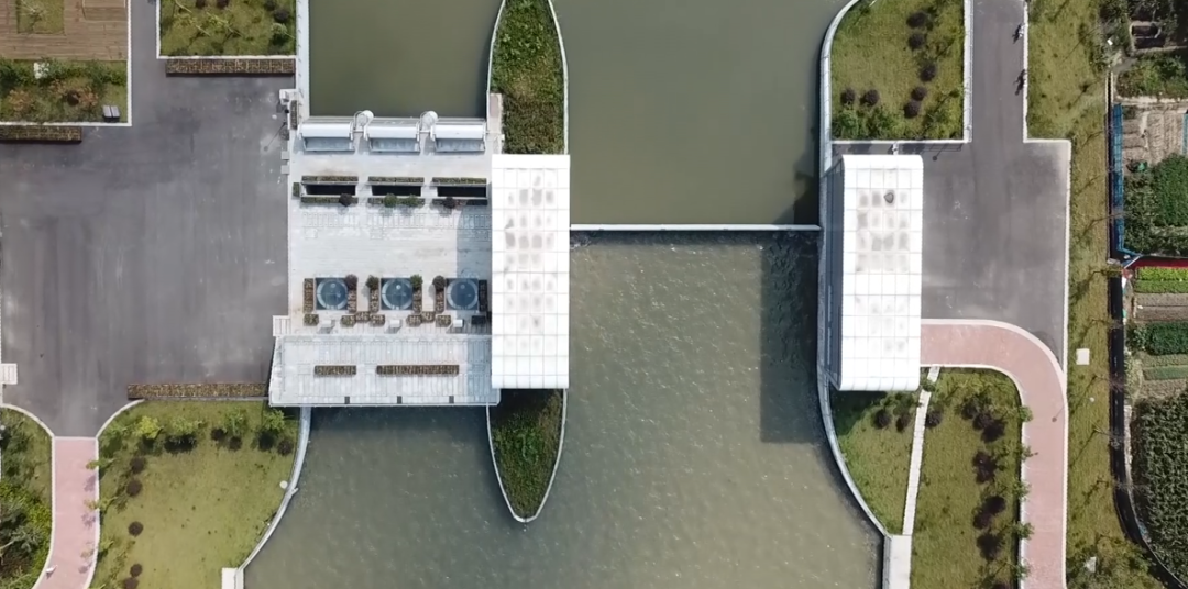 工程規(guī)劃與區(qū)域發(fā)展規(guī)劃高度融合,打通了原洞船河與姚江之間的“斷頭路”,提高了鄞西平原城區(qū)的防洪排澇能力。項(xiàng)目建筑設(shè)計(jì)與周邊環(huán)境完美結(jié)合。泵站及閘門上部采用無廠房設(shè)計(jì),水泵機(jī)組采用立式潛水機(jī)組,閘門采用底軸驅(qū)動(dòng)翻板門,泵站上下游視野通透,觀感效果佳。管理房屋頂設(shè)計(jì)為綠化屋頂,管理房隱藏于周邊綠化之中,滿足姚江岸高標(biāo)準(zhǔn)景觀要求。生態(tài)河道設(shè)計(jì)符合人文和諧之美。護(hù)岸采用干壘生態(tài)擋塊,中間預(yù)留魚槽設(shè)計(jì),充分體現(xiàn)了生態(tài)環(huán)保設(shè)計(jì)理念。