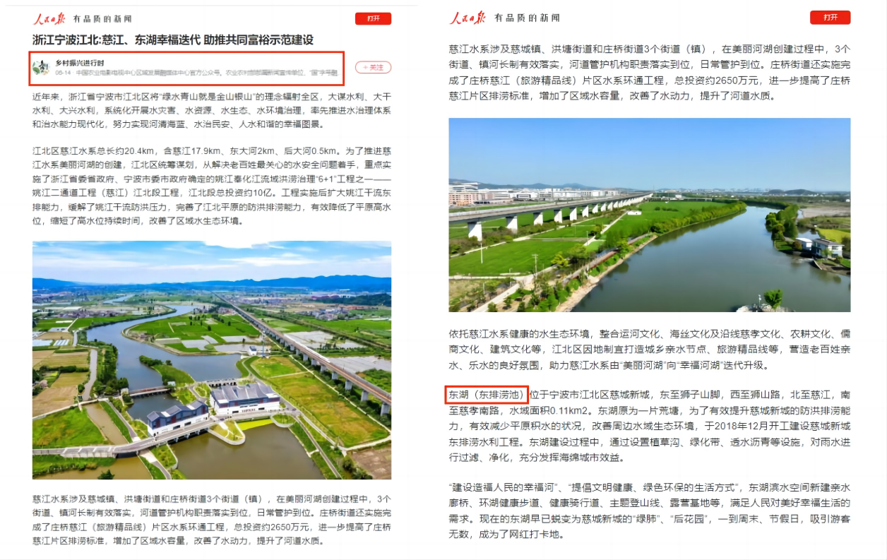 助力“幸福河湖”:人民日報(bào)客戶端報(bào)道我院慈城新城東排澇池水利工程