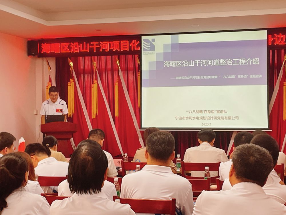 近日,海曙區(qū)直機(jī)關(guān)工委和區(qū)水利局以“五最黨建”為引領(lǐng),在集士港鎮(zhèn)岳童村文化禮堂舉行沿山干河項目化黨建聯(lián)建暨“‘八八戰(zhàn)略’在身邊”主題宣講啟動儀式,我院作為沿山干河項目參建單位、活動的承辦方參與了啟動儀式。我院黨總支書記、副院長王洪霞,工程設(shè)計項目組及青年黨員代表十余人參加了上述活動。