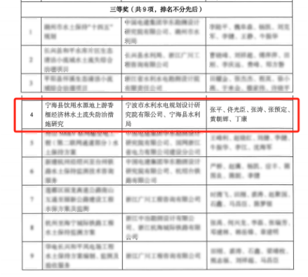 近日,浙江省水土保持學(xué)會(huì)第三屆優(yōu)秀設(shè)計(jì)評(píng)選獲獎(jiǎng)名單出爐,15個(gè)獲獎(jiǎng)工程中,我院成功鎖定一席!此次我院受寧海縣水利局委托開展實(shí)施的寧??h飲用水源地上游香榧經(jīng)濟(jì)林水土流失防治措施研究榮獲三等獎(jiǎng)。該獎(jiǎng)項(xiàng)由浙江省水土保持學(xué)會(huì)設(shè)立,每?jī)赡暝u(píng)審一次,通過(guò)對(duì)水土保持規(guī)劃設(shè)計(jì)領(lǐng)域中取得優(yōu)異成績(jī)的集體和個(gè)人進(jìn)行表彰,從而推動(dòng)全省水土保持行業(yè)的發(fā)展。