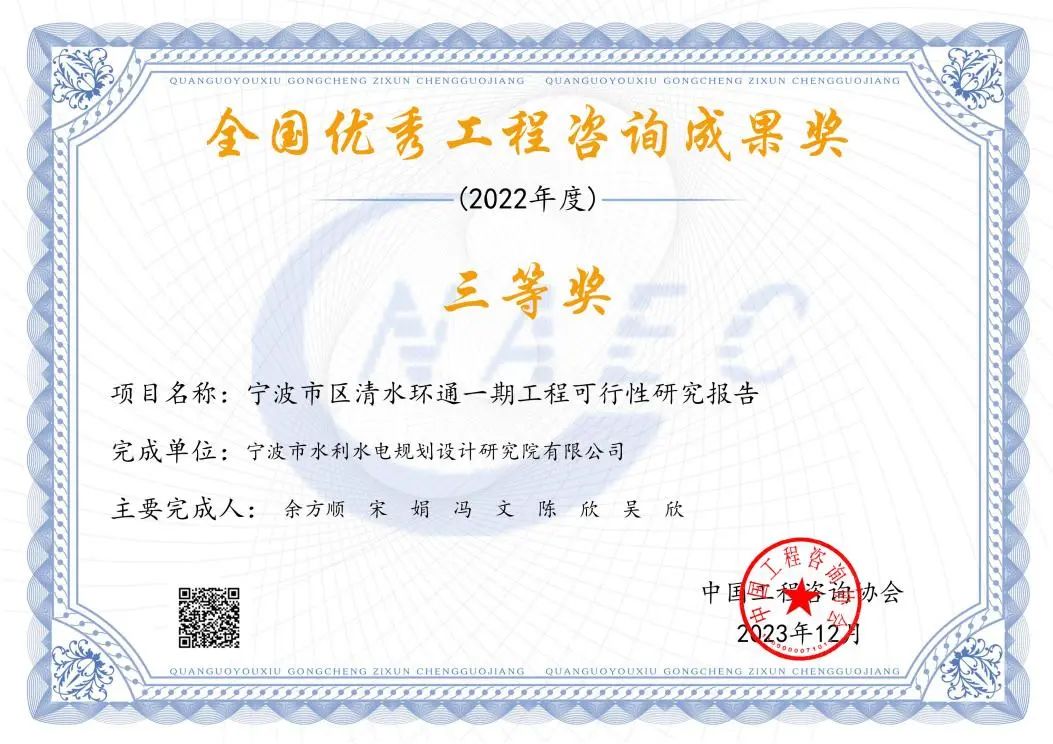 2023年我院多個項目在各類評比中脫穎而出,榮獲中國水利工程優(yōu)質(zhì)(大禹)獎、國家優(yōu)質(zhì)工程金獎、全國優(yōu)秀工程咨詢成果三等獎、浙江省水利科技創(chuàng)新獎、浙江省水土保持學(xué)會第三屆優(yōu)秀設(shè)計三等獎、“浙江省文明標(biāo)化工地”稱號、2023 年度寧波市建設(shè)工程優(yōu)秀勘察設(shè)計獎、2023年度寧波市“甬江建設(shè)杯”優(yōu)質(zhì)工程獎、寧波市水利科技創(chuàng)新獎、寧波市水利學(xué)會優(yōu)秀論文獎等各類榮譽20余項。