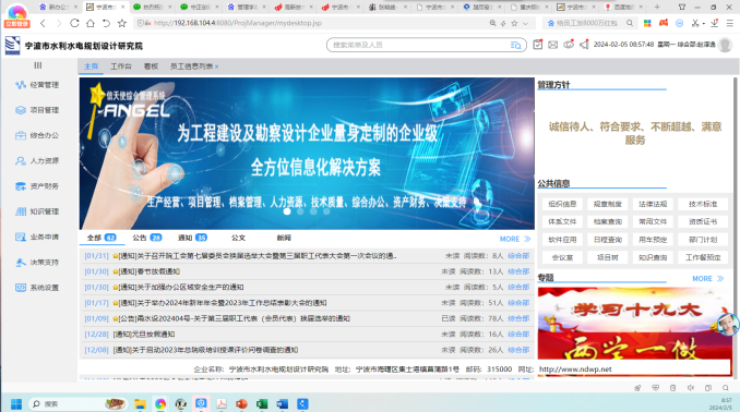 從2002年探索建設(shè)流域數(shù)字化至今,寧波院業(yè)務(wù)的數(shù)字化已走過了20多年,2023年,以事業(yè)部制轉(zhuǎn)型為契機,提出建設(shè)以O(shè)A辦公系統(tǒng)、業(yè)財一體化系統(tǒng)、知識庫系統(tǒng)為代表的管理工具,在業(yè)務(wù)數(shù)字化的基礎(chǔ)上,推動企業(yè)管理的數(shù)字化轉(zhuǎn)型。
