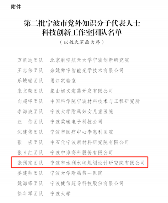 張預(yù)定創(chuàng)新工作室榮獲“寧波市黨外知識分子科技創(chuàng)新工作室”授牌,是對我院在水利領(lǐng)域深耕創(chuàng)績的肯定和認可,也對我院將來的工作推進提出了更高的標準和要求。為此,我院將以此為契機,積極發(fā)揮榜樣團隊的示范引領(lǐng)作用,進一步激勵和支持廣大員工立足崗位、投身科技創(chuàng)新,以實干思維緊扣謀事成事的主旋律,以鉆研精神夯實攻堅克難的基本功,力求在新質(zhì)生產(chǎn)力培育發(fā)展上再創(chuàng)佳績,為寧波水利高質(zhì)量發(fā)展作出新貢獻。